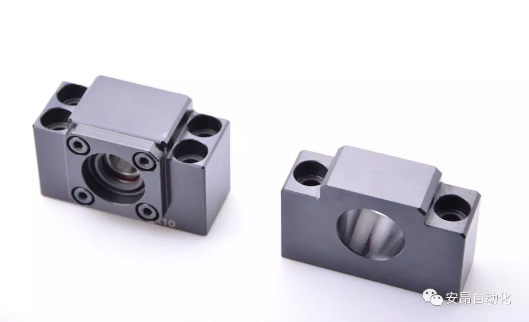 一、支撑座有8个型号,对标准滚珠螺杆库存品的轴端、成品,预备了标准化的支撑座EK、 EF、FK、FF型,对一般滚珠螺杆预备了标准支撑座AK、AF、BK、BF型。固定侧装有经预压调整的JIS5级或P0级的角接触滚珠轴承,可依选用螺杆等级做符合经济的搭配。